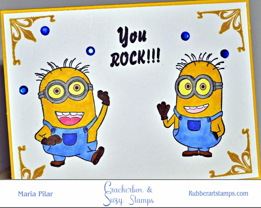 Después de estampar los sellos de Minion Bob y Minion Phil con el dicho You rock sobre cartulina blanca White Smooth Card Stock , coloreé los Minion con mis rotuladores Copics.